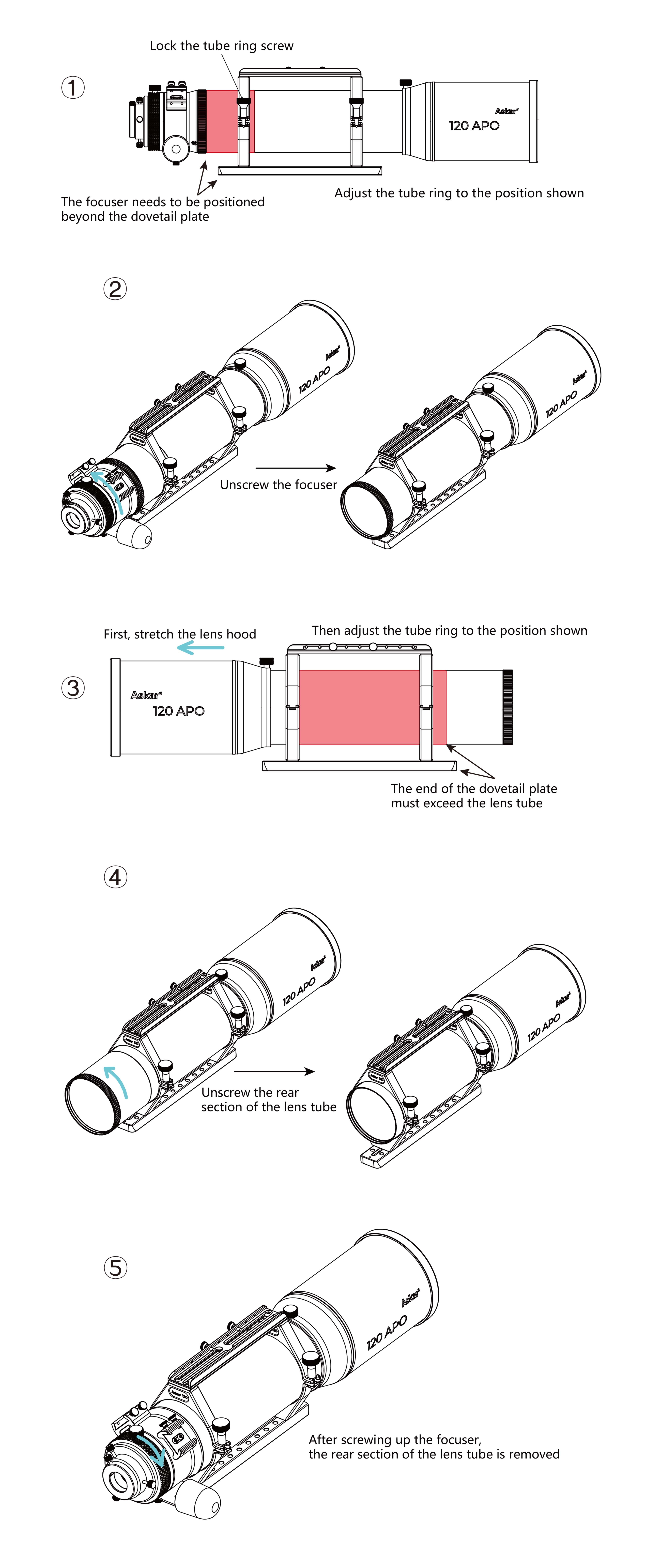 Instruction for Detaching the 120APO Segmented Lens Tube (suitable for the binoviewer)