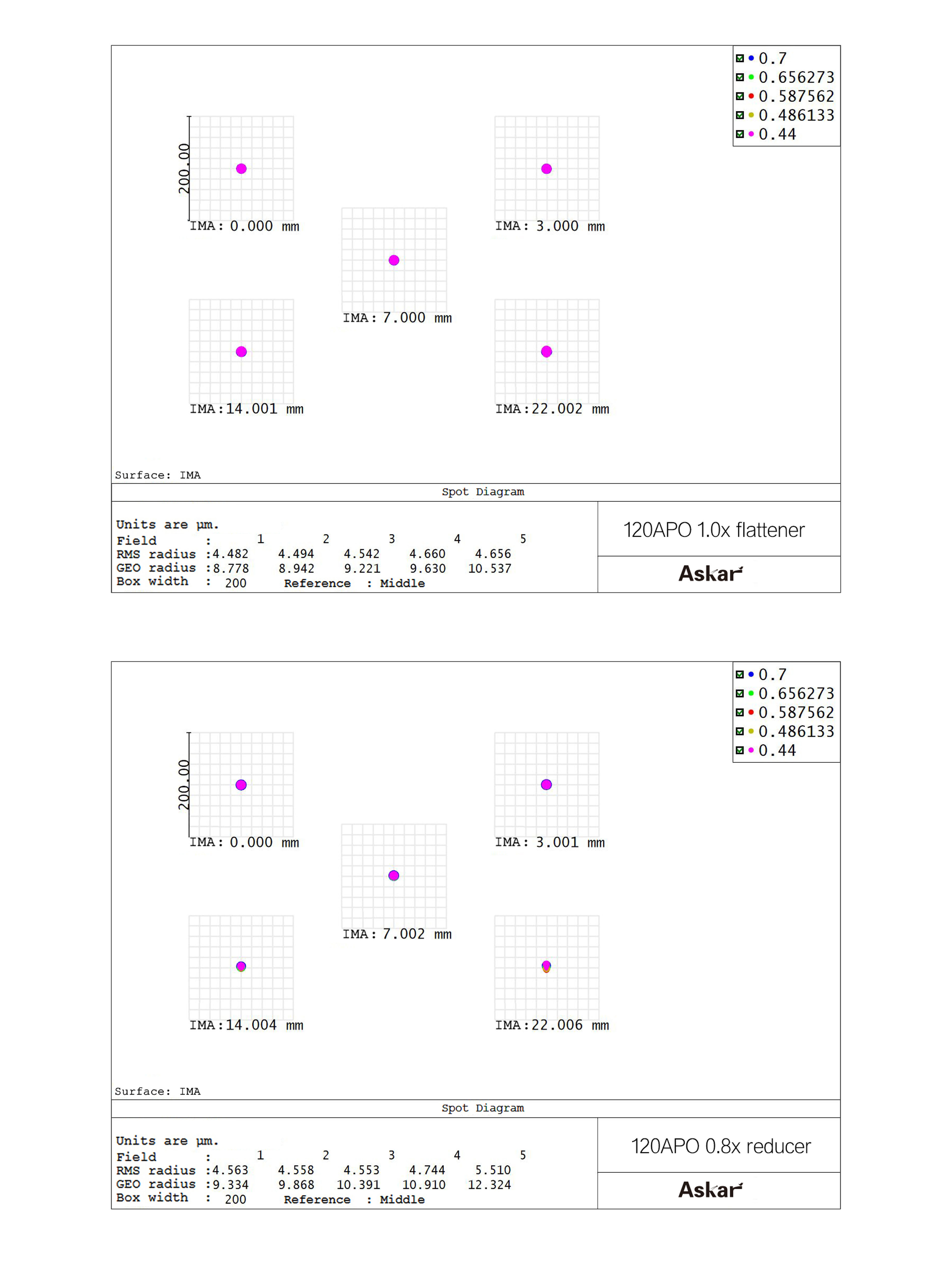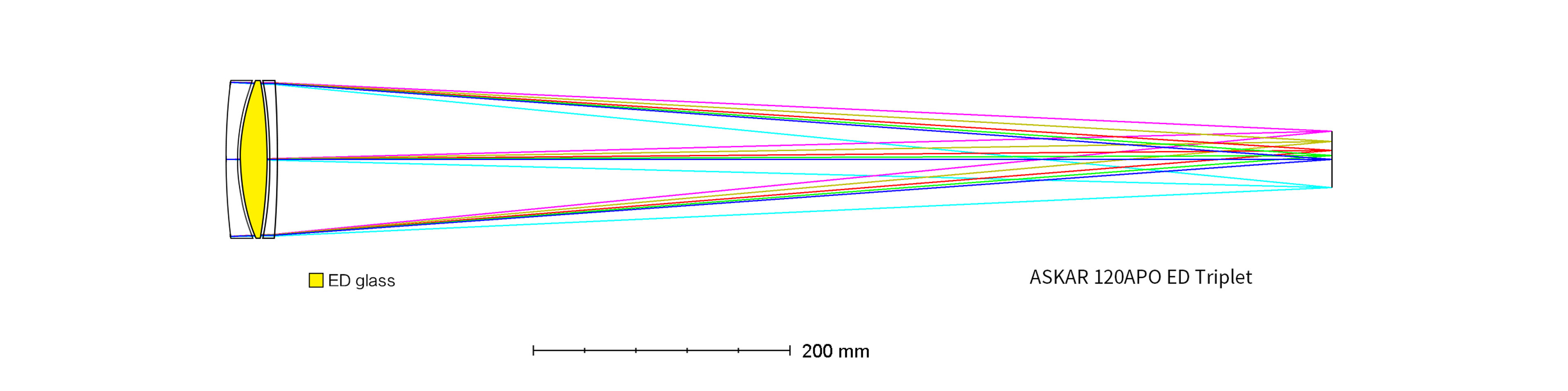 Askar 120APO adopts a triplet air-spaced APO lens design, including one piece of ED glass.