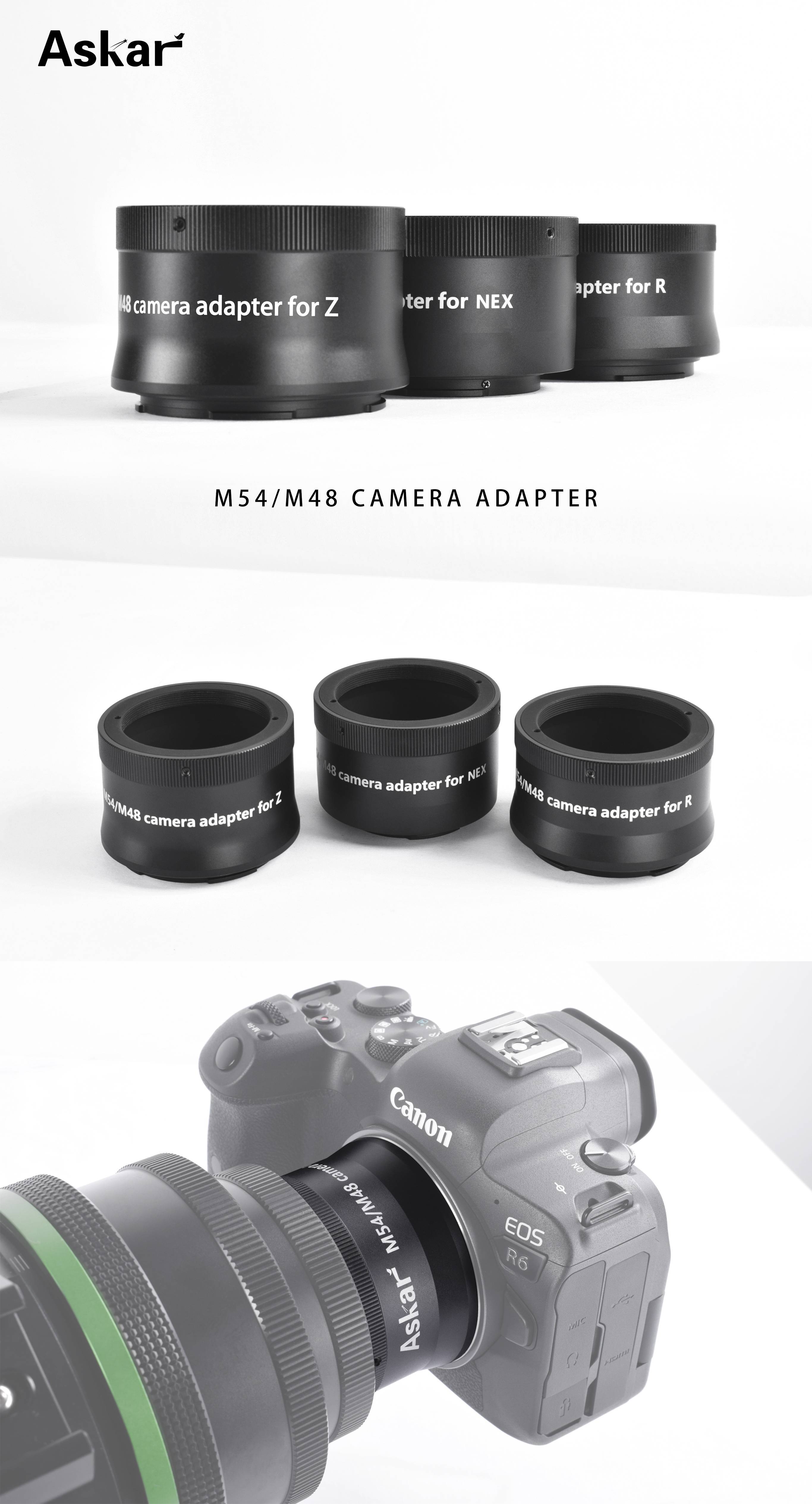 As the rear side of telescopes and other astronomical accessories are increasingly designed with male threads, there is an increasing demand for camera adapters with female threads. Therefore, we have launched this M54/M48 camera adapter with female threads for Nikon, Canon, and Sony mirrorless cameras.