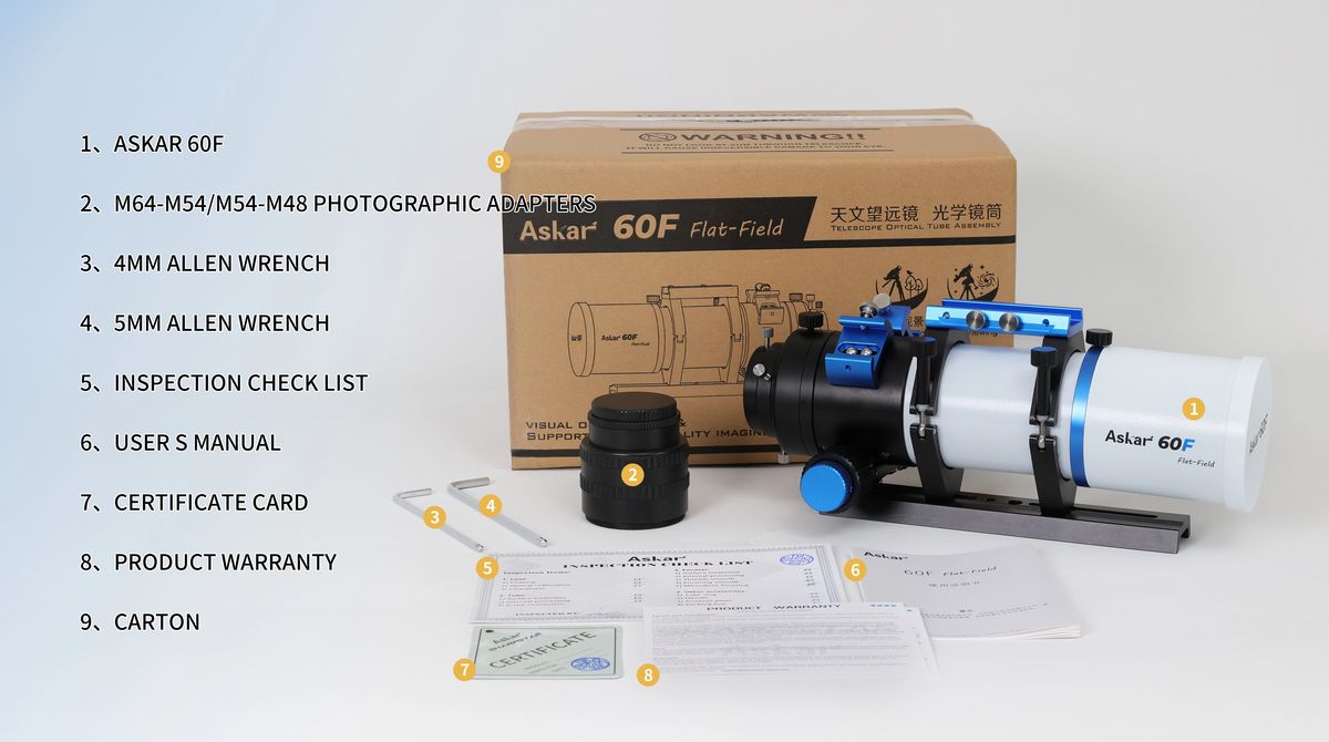 Delivering professional-level capability at a beginner-friendly cost, the Askar 60F is an excellent partner for sky observation and nature imaging. Pack light, explore more – begin your adventure with the Askar 60F!