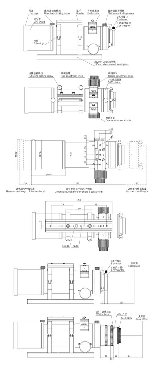• 289mm (dew shield contracted, incl. 1.25" adapter)