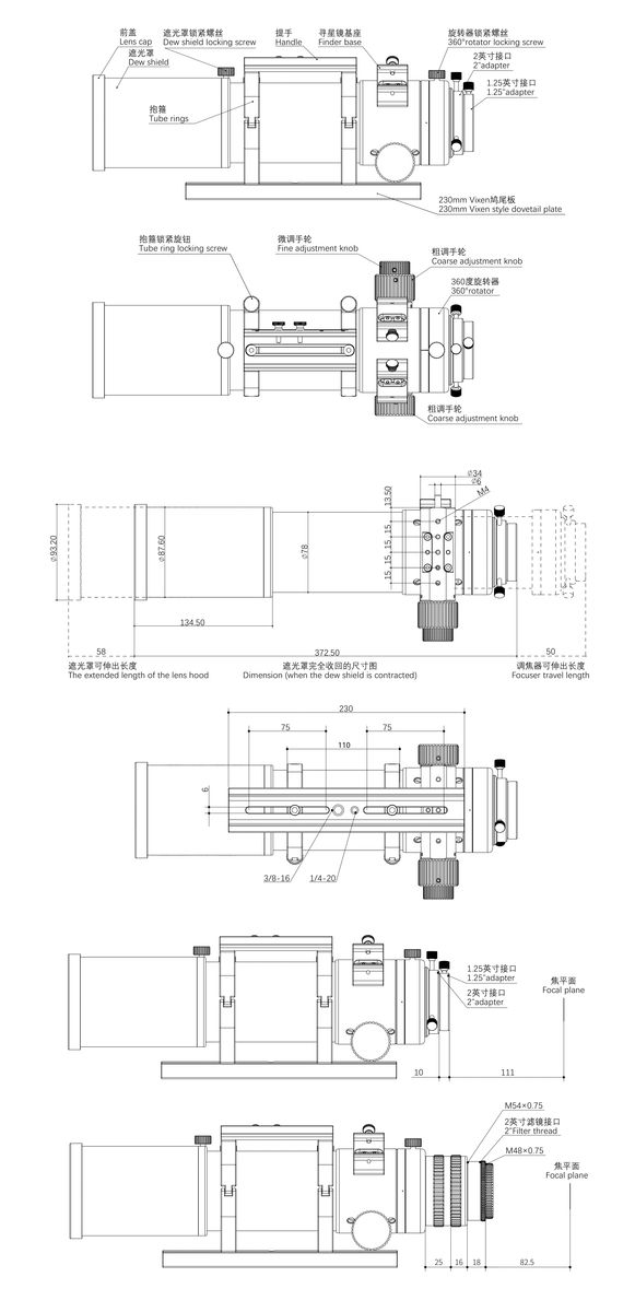 • 372.5mm (dew shield contracted, incl. 1.25" adapter)