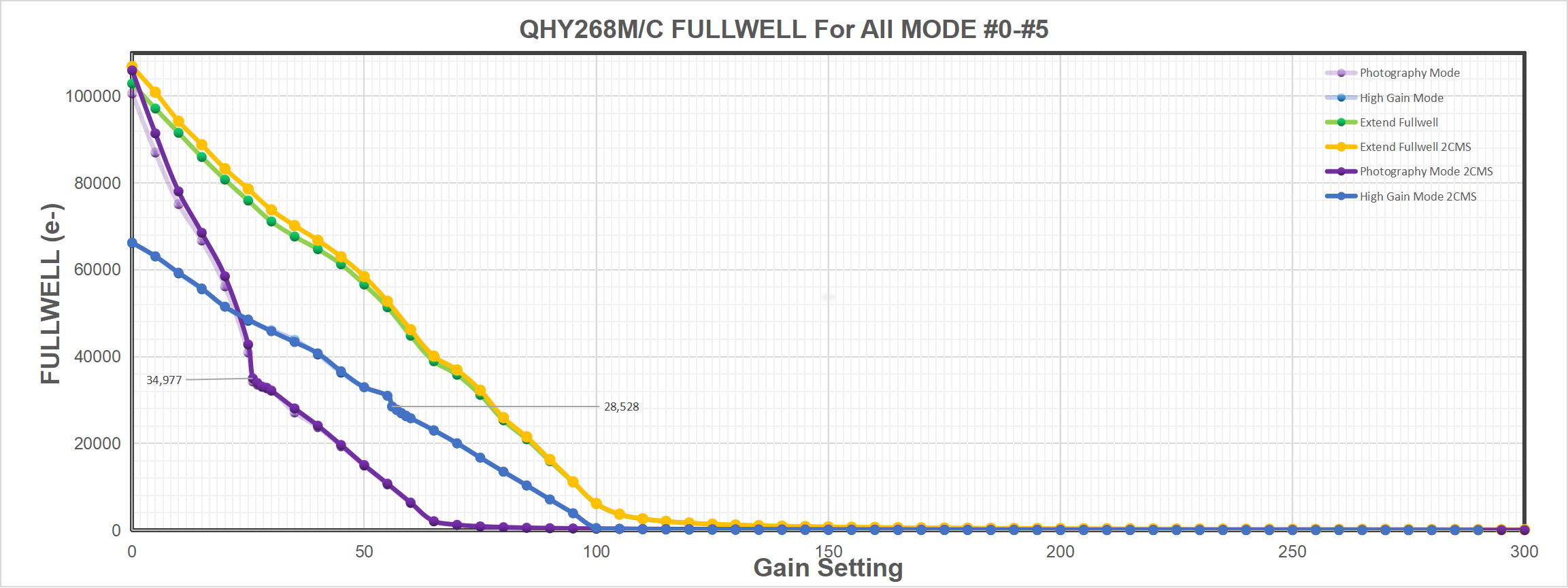 Mode #2: Extended Full Well Mode (increased full well, up to 75ke- on QHY268)