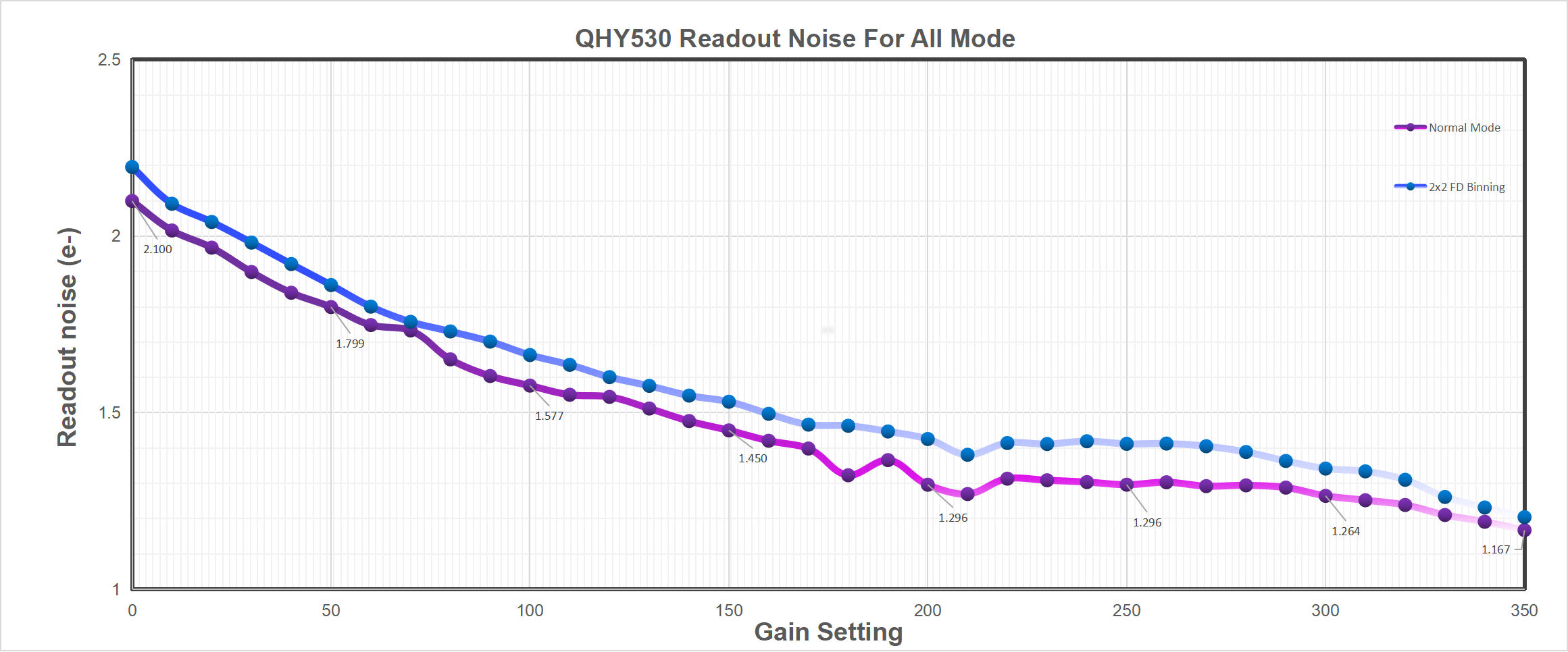 Historically, only CCD sensors supported actual hardware binning, while CMOS models used software-based digital binning, which merely merged pixels algorithmically. The drawback with digital 2×2 binning, for example, is that although signal strength increases fourfold, noise doubles, leading to only a twofold gain in signal-to-noise ratio. Furthermore, this method does not improve frame rates. In contrast, hardware binning avoids amplifying noise and achieves a real 4× improvement in signal-to-noise. It also boosts frame rates significantly, even without enabling ROI mode.