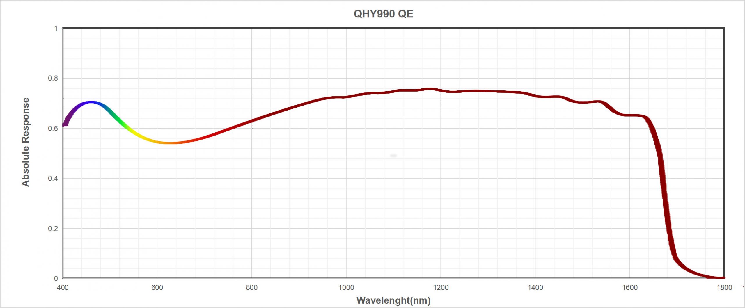 The QHY990, QHY991, and QHY992 models are advanced short-wavelength infrared (SWIR) cameras that utilize Sony’s InGaAs sensors: IMX990, IMX991, and IMX992. These scientific imaging devices offer a high quantum efficiency, reaching up to 77% at 1200 nm, and cover a broad spectral range from 0.4 μm to 1.7 μm with excellent sensitivity.