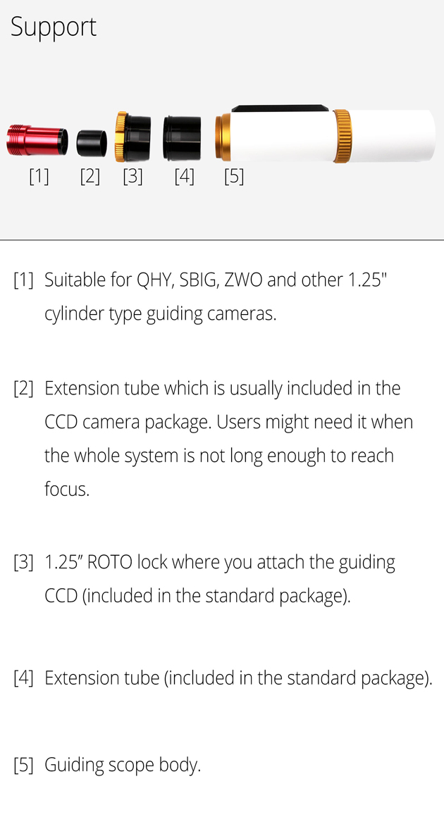 This guide scope is engineered to work in conjunction with the CNC Slide-In Carry Handle that comes with the above William Optics models. It does not fit earlier versions of WO refractors due to the integrated Slide-Base design.
