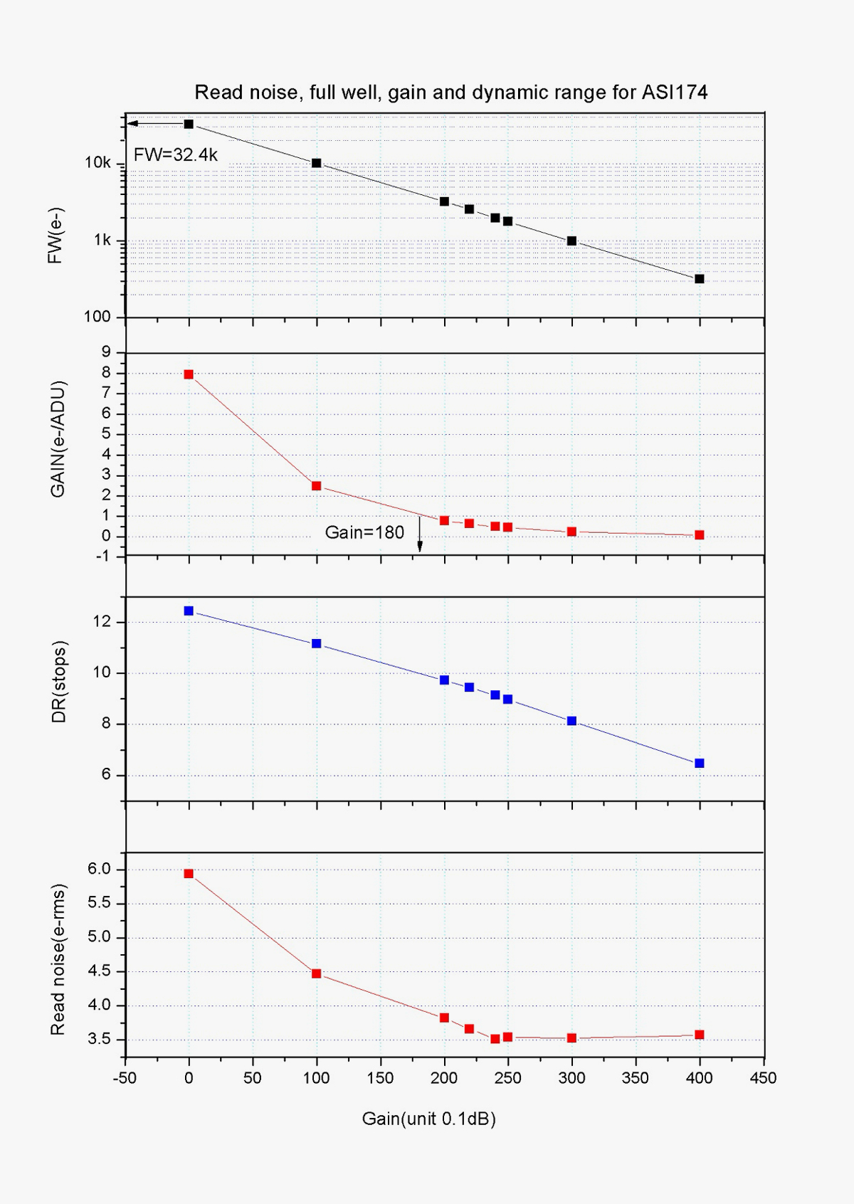 Sensitivity is the first thing we considered. This is of course a crucial ability when looking for a star to guide on. So, from the beginning, we were set on using monochrome sensors to design our guide cameras. Because monochrome sensors have much higher sensitivity than their colour counterpart. Luckily the ASI120MM Mini, ASI290MM Mini and ASI174MM Mini all have very high QE peak value – about 80%, which can detect more stars in view and shorten the exposure time in guiding.
