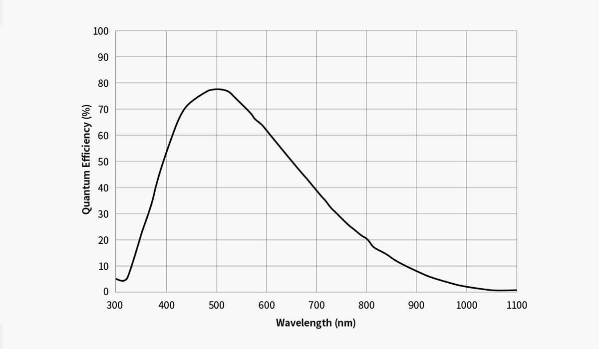 Regarding the absolute QE Curve, we estimate the Peak Value is about 77%.
