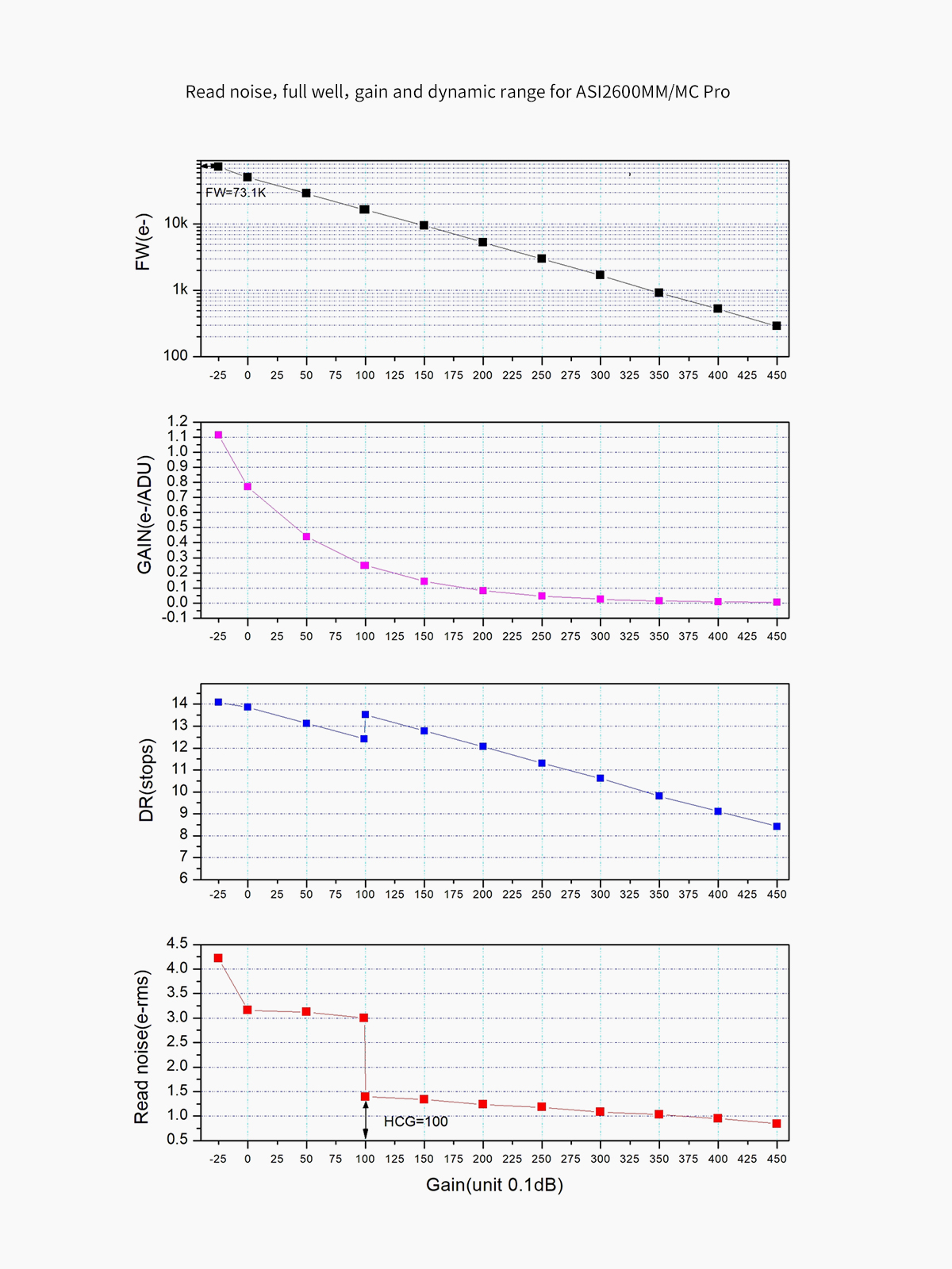 The ASI2600MM/MC Pro achieves a dynamic range of up to 14