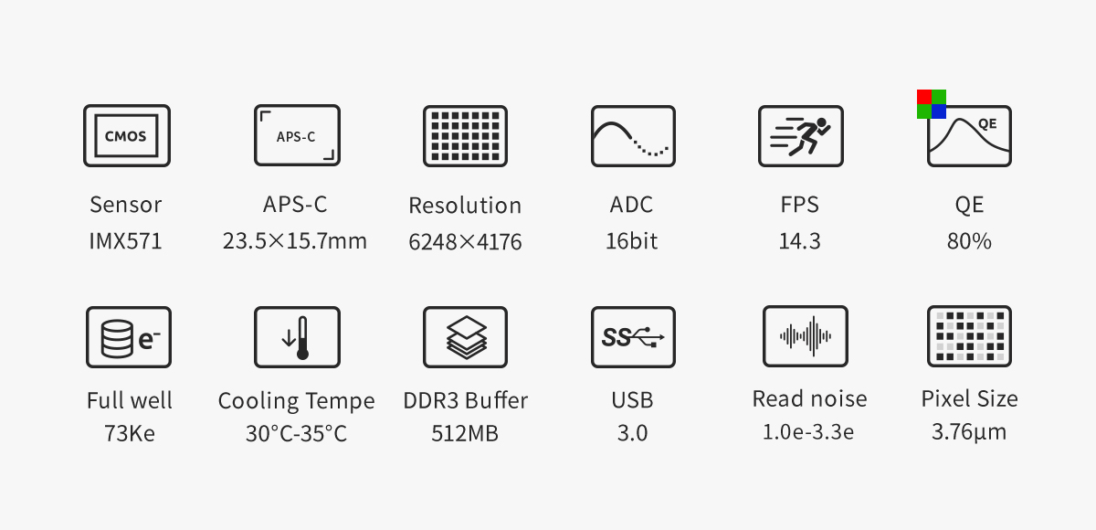 The ASI2600MM/MC Pro incorporates a high-speed USB 3.0