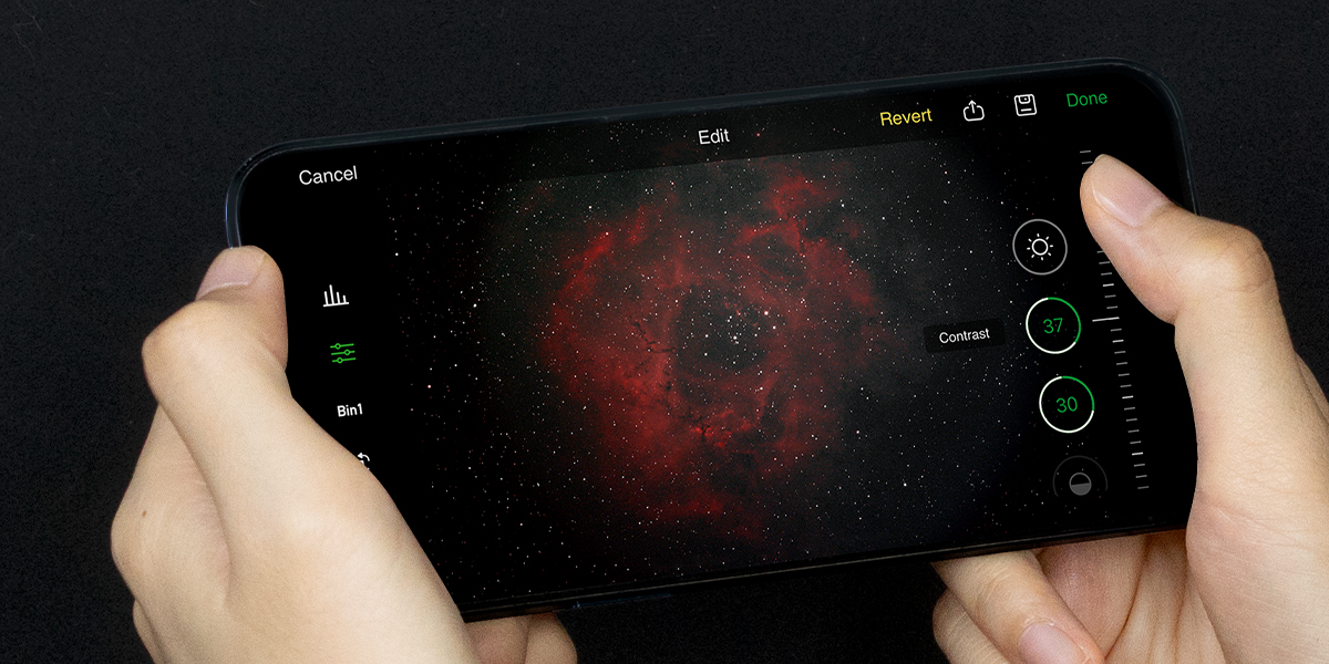 Live stack is supported during your imaging session. You may also make adjustments to brightness, contrast and others on the final image. Instantly share your masterpieces on social media platforms and astronomy communities, making your work stand out.