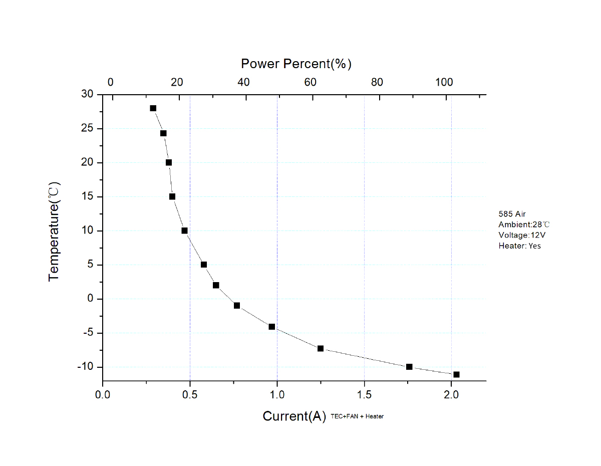 The two-stage TEC cooling system lowers the CMOS sensor temperature by 30°C–35°C below ambient, effectively reducing dark current generation.