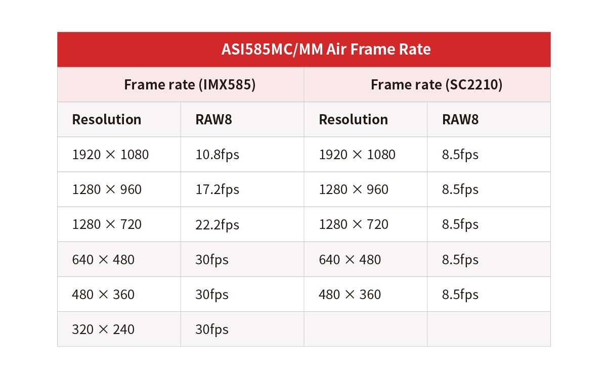 After “ZWO Laboratory” calculation, the peak quantum efficiency of ASI585MC Air is 88%. The peak quantum efficiency of ASI585MM Air is 91%