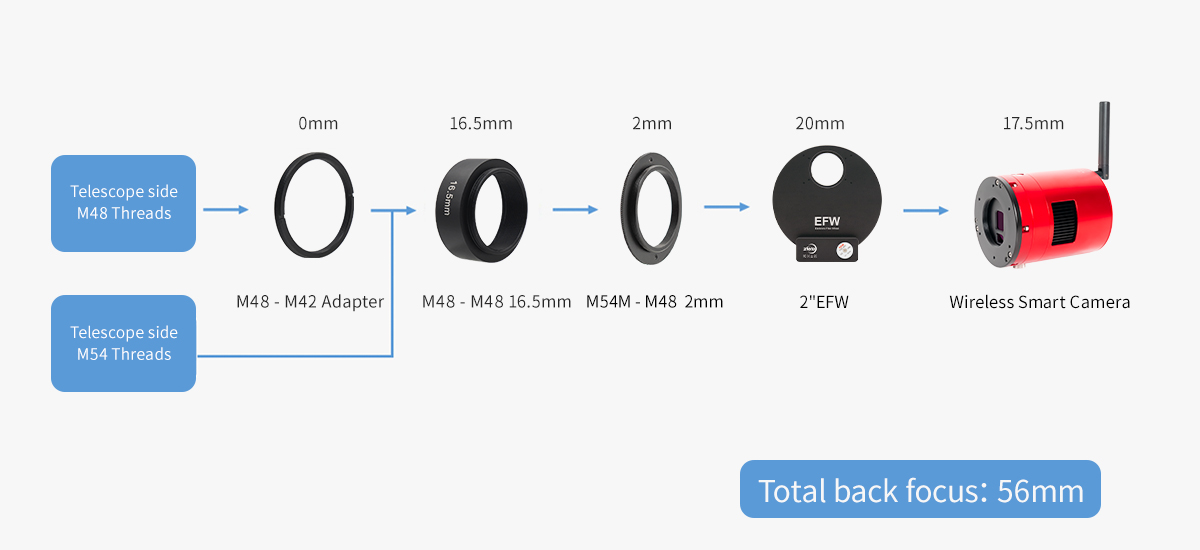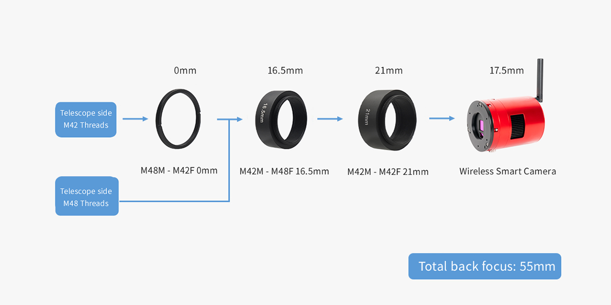 ZWO Air cameras are compatible with telescopes that support APS-C or larger image formats.