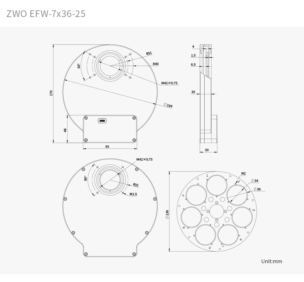 The new ZWO EFW is equipped with a high-precision stepper motor, ensuring consistent rotation and stable operation across extended imaging sessions.