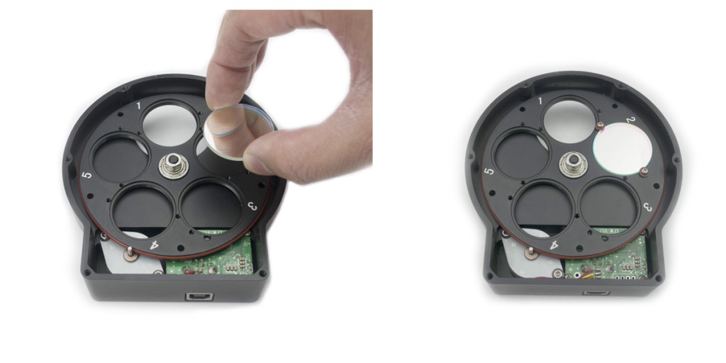 The Electronic Filter wheel can be rotated in both counter clockwise or clockwise direction for filter selection.